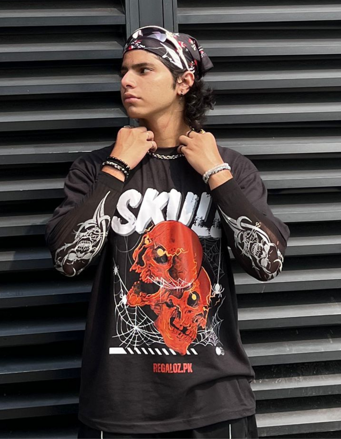 💀 Skull Szn Down Shoulder Shirt — By Regaloz Unleash the darker edge of streetwear...