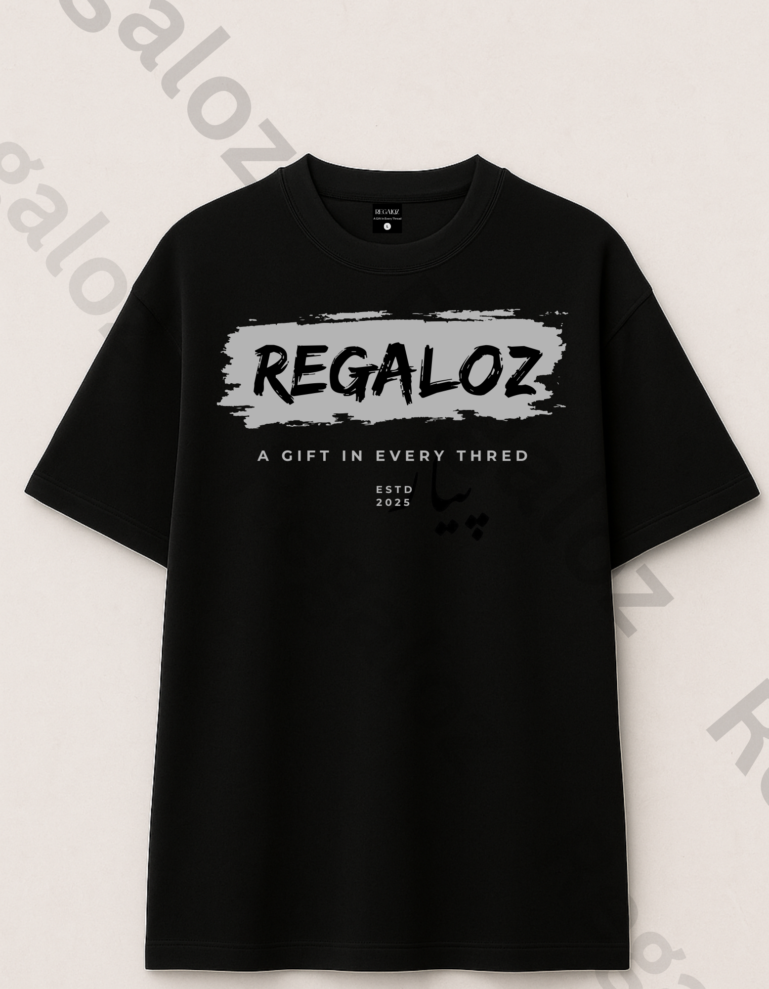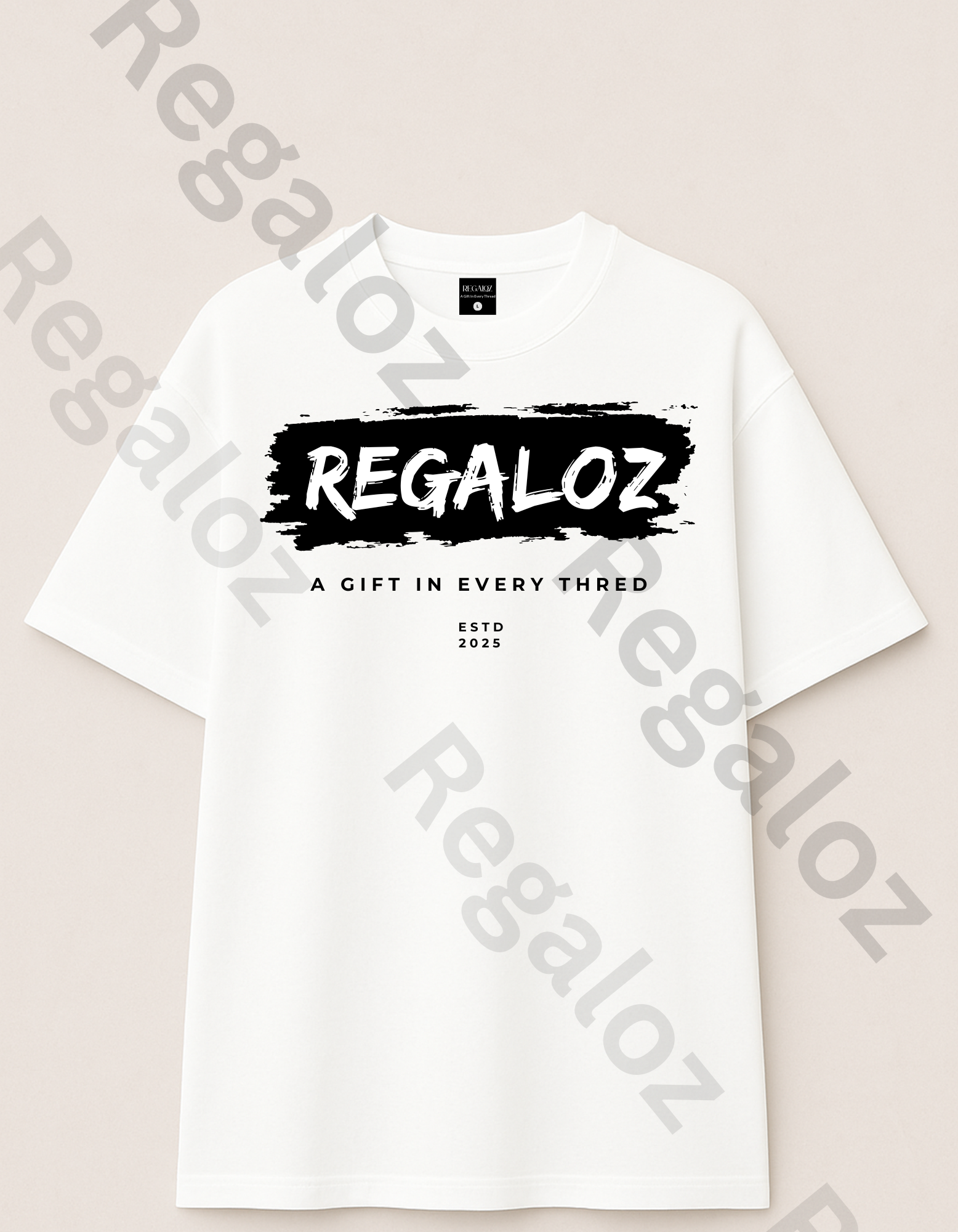 The A Gift in Every Thread Shirt features our signature Regaloz branding painted across the chest, paired with the words that define us.