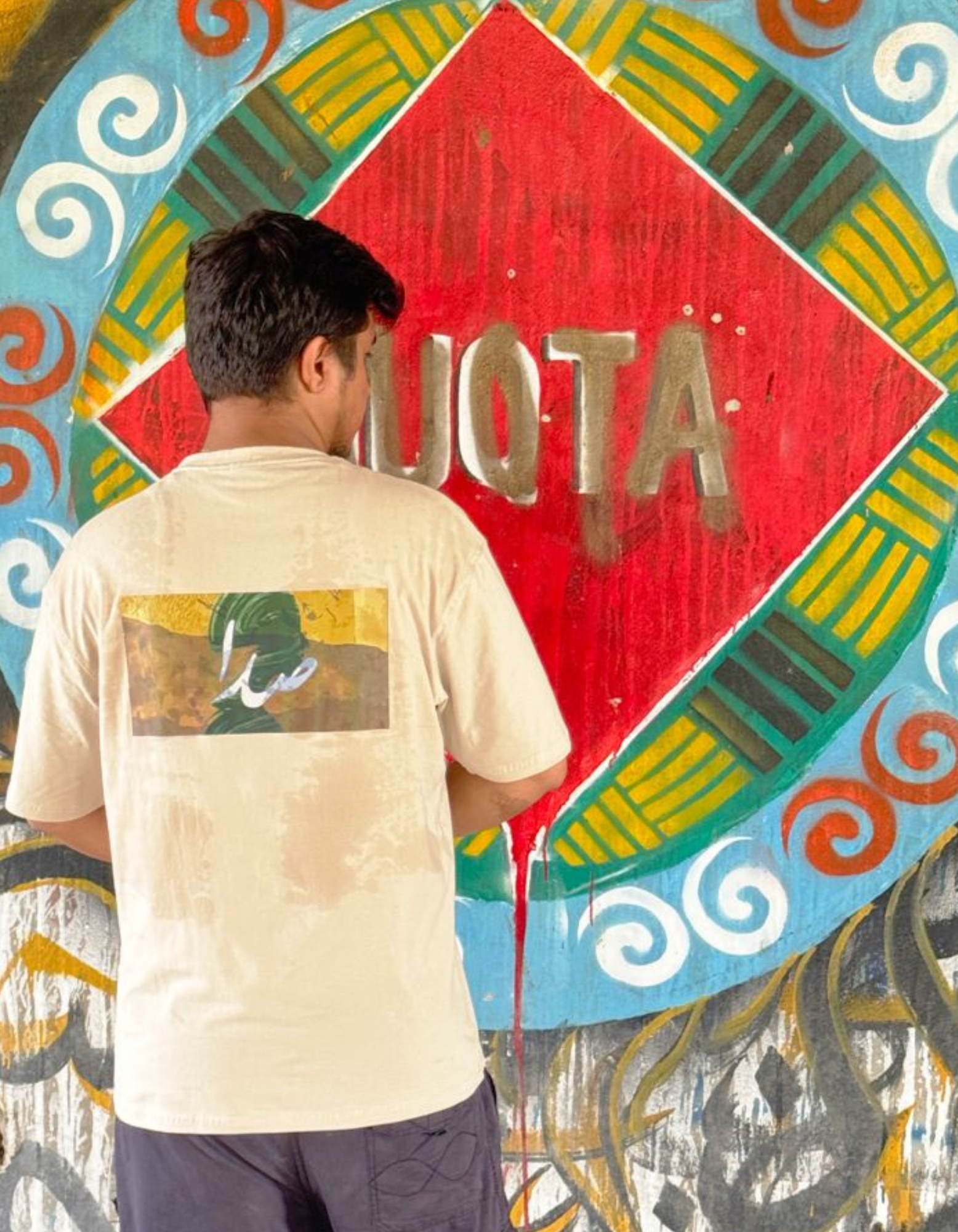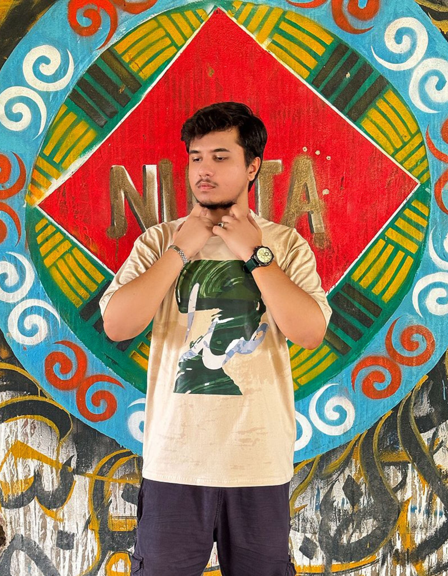 The Sada Shirt redefines “simple” — loud, proud, and printed in your language. From the desi-style green linework to the wall-textured back drop, every piece is intentional. Urdu has never looked this fresh on fabric.